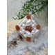 The Diamond frame is hand formed by me using thick Sterling silver wire onto which I have wire wrapped a lovely combination of cognac Baltic Amber (four smooth fat rondelles and one flat oval) and creamy-white cultured Freshwater Pearls including four silver wrapped Stick pearls, two large pearls and six big pearls.