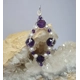 The elongated Diamond-shaped frame is hand formed by me using Sterling silver wire onto which I have wire wrapped an elegant combination of deep purple large and small faceted Amethyst beads and cream Freshwater Pearls directly onto the inside of the frame.