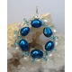 The elegant round Garland-shaped frame is hand formed by me using thick Sterling wire onto which I have wire wrapped a combination of faceted aqua-blue Apatite beads and large teal blue Pearls directly onto the inside of the frame and Apatite beads and small creamy-white Pearls onto the outside of the frame.