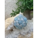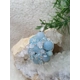 The Floral-shaped frame is hand formed by me using Sterling silver wire onto which I have wire wrapped an elegant assortment of soft blue gemstones; Aquamarine Apatite and Chalcedony faceted beads; and faceted Rainbow Moonstone beads directly onto the inside of the frame, filling it completely.