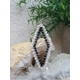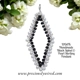 The elongated diamond-shaped frame is hand formed by me using Sterling silver wire onto which I have wire wrapped small faceted Black Spinel beads directly onto the inside of the frame and small creamy-white Freshwater Pearls onto the outside of the frame.