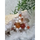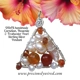 The triangle frame is hand formed by me using thick Sterling silver wire onto which I have wire wrapped gorgeous genuine small faceted Hessonite Garnets, smooth and faceted Carnelian beads and a combination of creamy-white and soft Apricot rondelle-shaped Freshwater pearls, a soft Apricot Stick pearl.
