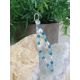 The elegant elongated diamond-shaped frame is hand formed by me using thick Sterling wire onto which I have wire wrapped a combination of faceted aqua blue Chalcedony beads, small faceted blue Agate and small creamy-white Pearls directly onto the inside of the frame.