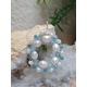 The elegant round Garland-shaped frame is hand formed by me using thick Sterling wire onto which I have wire wrapped a combination of blue Chalcedony beads and large creamy-white Pearls directly onto the inside of the frame and small faceted blue Agate beads and small creamy-white Pearls onto the outside of the frame.