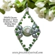 The elongated Diamond-shaped frame is hand formed by me using Sterling silver wire onto which I have wire wrapped a single vibrant iridescent green Freshwater Coin Pearl, flanked on either side by three green Freshwater Pearls and 26 stunning, naturally vibrant green, Diopside faceted round beads directly onto the inside of the frame.