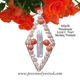 The elongated Diamond-shaped frame is hand formed by me using Sterling silver wire onto which I have wire wrapped a cheerful combination of small and medium round salmon-pink Coral beads, creamy-white Freshwater Pearls and a stunning white Stick Pearl (suspended in the centre) directly onto the inside of the frame.