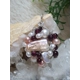 The round frame is hand formed by me using thick Sterling silver wire onto which I have wire wrapped gorgeous combination of genuine small deep red round and faceted Garnet beads and a selection of creamy-white and deep Apricot coloured rondelle-shaped Freshwater pearls. Gorgeous creamy-white Coin and a heart-shaped Coin pearl complete this unusual colour combination.