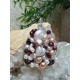 The round frame is hand formed by me using thick Sterling silver wire onto which I have wire wrapped gorgeous combination of genuine small deep red round and faceted Garnet beads and a selection of creamy-white and deep Apricot coloured rondelle-shaped Freshwater pearls. Gorgeous creamy-white Coin and a heart-shaped Coin pearl complete this unusual colour combination.
