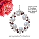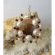 The elegant round Garland-shaped frame is hand formed by me using thick Sterling wire onto which I have wire wrapped a combination of faceted Garnet beads and large creamy-white Pearls directly onto both the inside of the frame and Garnets and small creamy-white Pearls onto the outside of the frame.