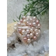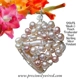 The Diamond-shaped frame is hand formed by me using thick Sterling silver wire onto which I have wire wrapped an elegant and stylish combination of peach, apricot, blush and rose cultured pearls Freshwater Pearls and apricot Stick Pearls directly onto the inside of the frame, filling it completely. I've incorporated plenty of Sterling coils into the design.