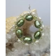 The elegant round Garland-shaped frame is hand formed by me using thick Sterling wire onto which I have wire wrapped a combination of faceted Peridot beads and large green Pearls directly onto the inside of the frame and smaller faceted Peridot beads and small creamy-white Pearls onto the outside of the frame.