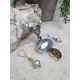 The necklace also features two central open-filigree Balinese silver beads and a unique Sterling silver surrounded, articulated, pendant. The pendant features a large open filigree round silver bale, a faceted teardrop Peridot, a large genuine silvery-grey Mabe pearl (20mm by 35mm) and a genuine Ammonite fossil (15mm by 20mms). The pendant has an approximate total drop of 7cms.