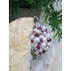 The Round-shaped frame is hand formed by me using thick Sterling silver wire onto which I have wire wrapped a lovely and elegant combination of creamy-white Freshwater Pearls and vibrant red Ruby faceted beads directly onto the inside of the frame, filling it completely.